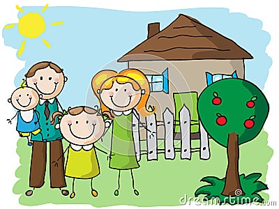 Cartoon Happy Family Against A Landscape And The House ... from thumbs.dreamstime.com